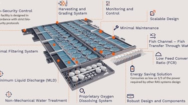 We are transforming aquaculture into a high-performance, land-based industry through advanced Recirculating Aquaculture Systems (RAS), delivering premium, traceable seafood while minimizing environmental and biological risk.